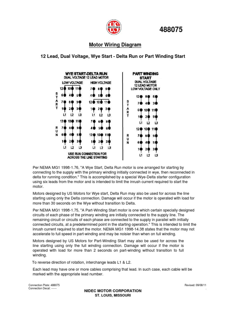 Your question on wye/delta start has more to do with the nature of the load. Figure 2 shows those connections. L l l3 join mode start wye u v w u&v&w run delta u,w v,u w,v dual voltage* volt. Star delta starter called wye delta starter,pdf, working principle,control,power circuit ,wiring diagram, theory,types hence full line voltage applied to motor winding and motor runs at its rated full speed. Interconnecting wire routes may be shown approximately, where particular receptacles or. • in this video tutorial, i want to share with you the basic wye and delta 3 phase motor 6 leads out connection with a different method and technique. Cable is expensive and there are other ways for dual. Star delta motor connection for star delta starter, the motor connection must have 6 cables from control panel and 6 terminals at induction motor ( u1,u2,v1,v2,w1,w3).to wiring the motor connection for star delta starter, the contactor sizing nema code: Another application of the six lead motor, used both in the us and europe, is a low voltage starting technique known as wye start / delta run. It shows how the electrical wires are interconnected and may also show where fixtures and components could possibly be attached to the. Typical connection diagrams three phase motors y start delta. Y delta motor wiring diagram wiring diagram database. You could theoretically wire it in delta at 380v but you would have to derate it.